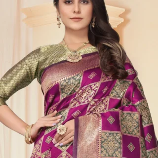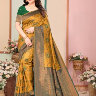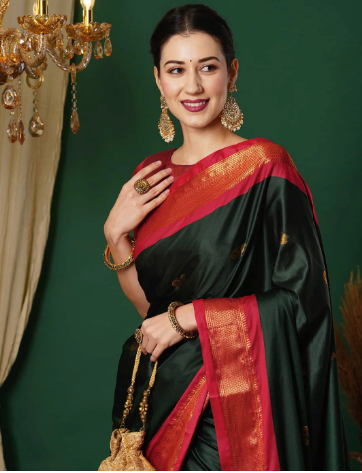 Apne rivajo Enterprise Floral Print Banarasi Jacquard Saree (Green)