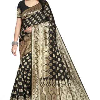 Apne rivajo Enterprise Woven Banarasi Jacquard, Silk Blend Saree (Black)