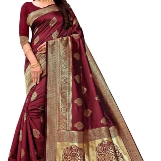 Apne rivajo Enterprise Woven Kanjivaram Silk Blend Saree (Maroon)