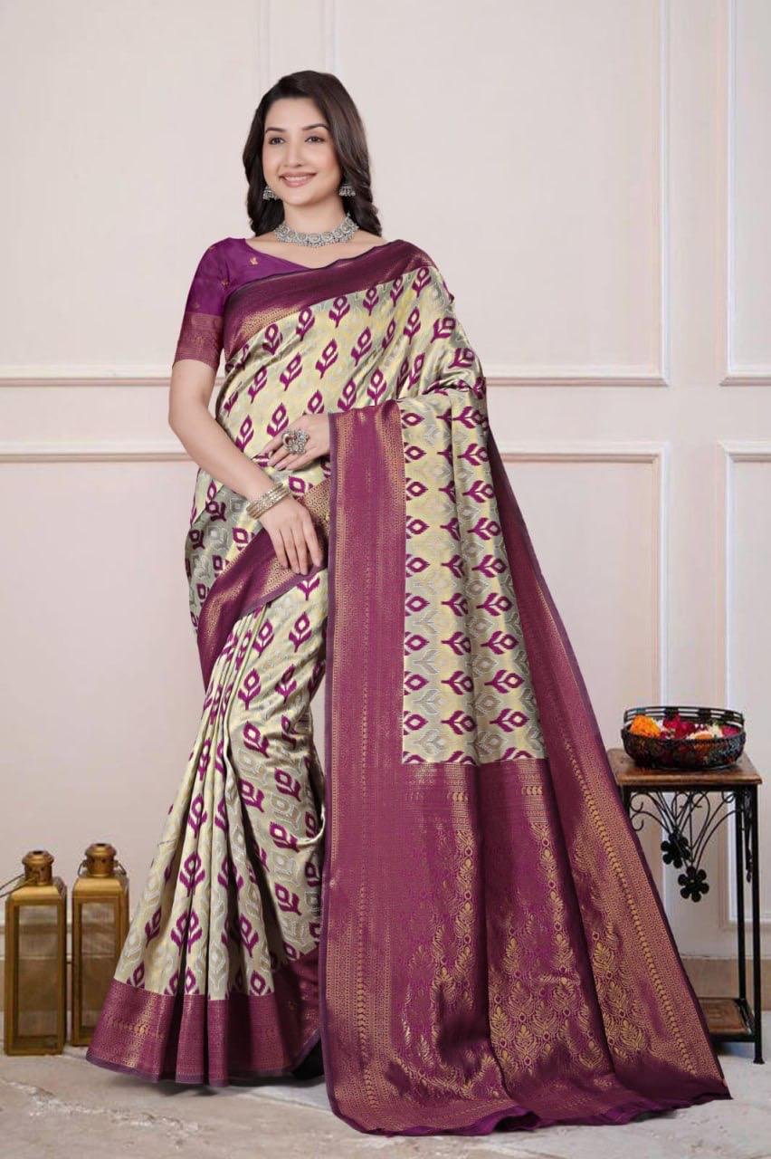 Apne rivajo Enterprise Woven Banarasi Jacquard, Cotton Silk Saree (Multicolor)