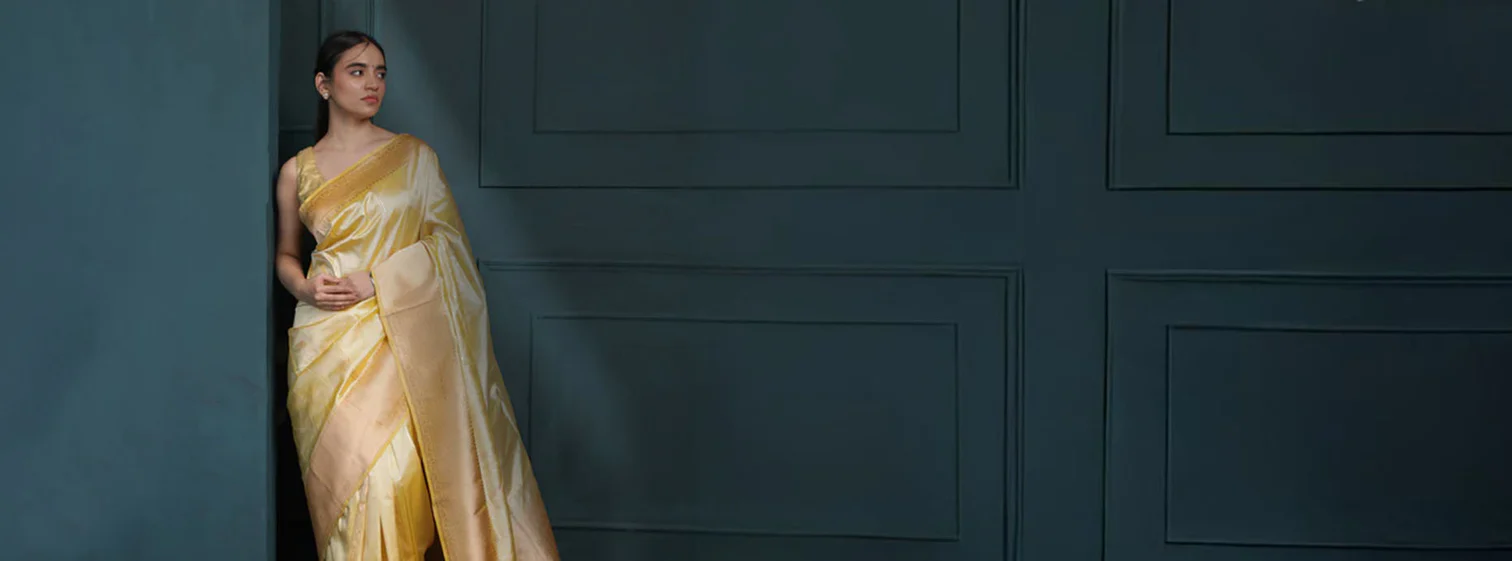 Apne rivajo Enterprise Self Design, Embellished, Woven Banarasi Cotton Blend Saree (Yellow)