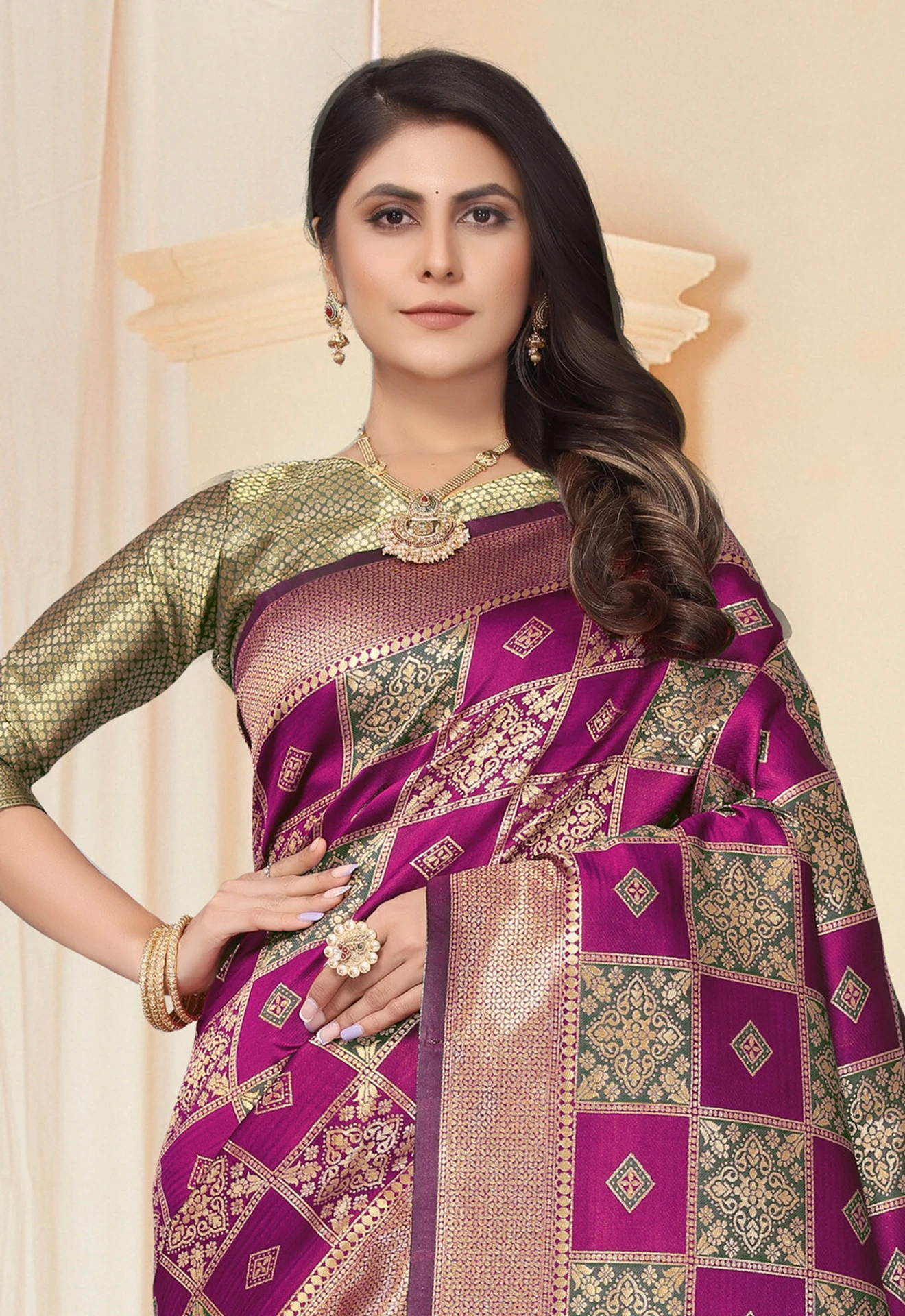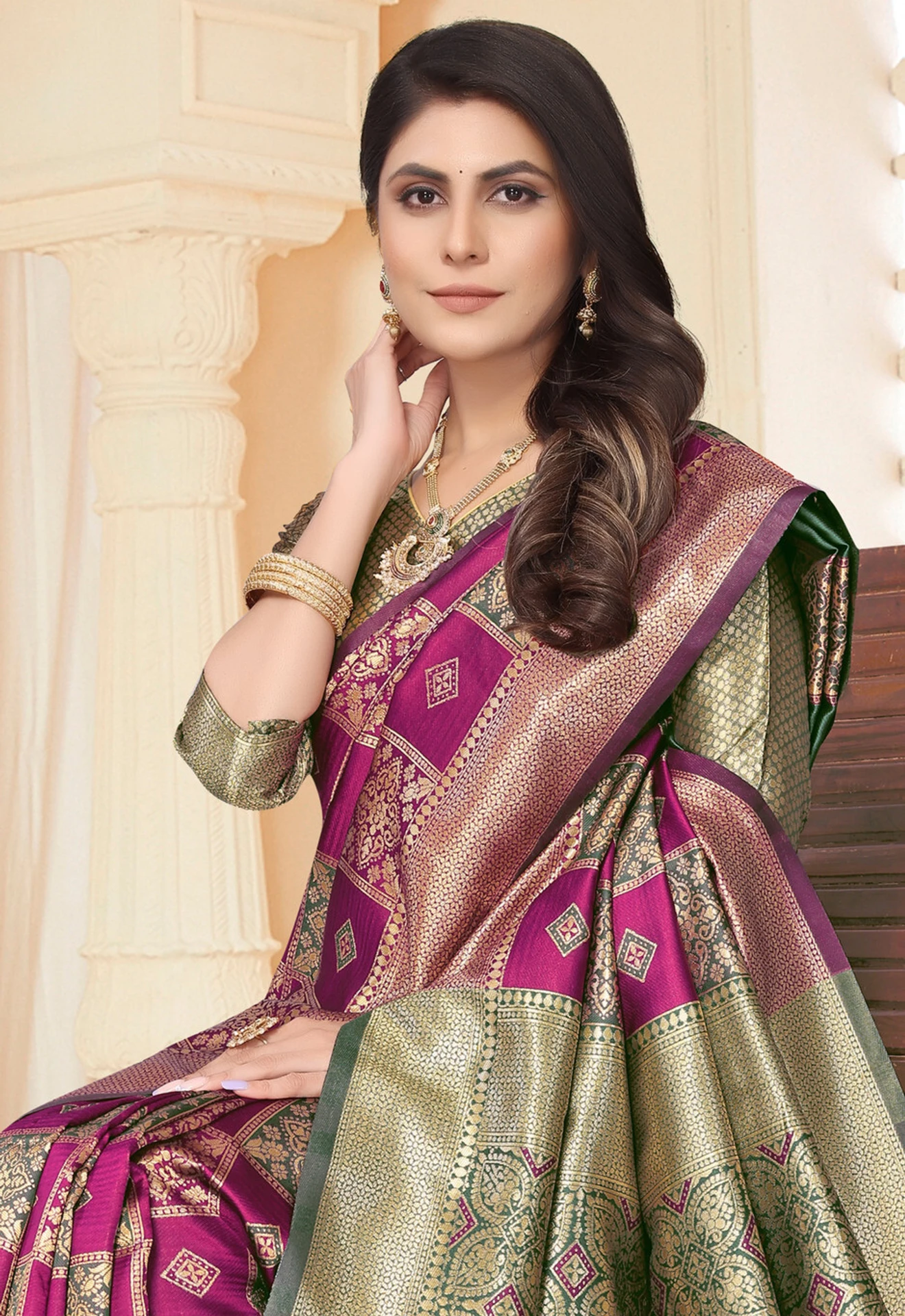 kajnivaram sareeWomen's Woven Kanjivaram Jacquard Saree with Rich Copper Zari Pallu and Butti Work Blouse